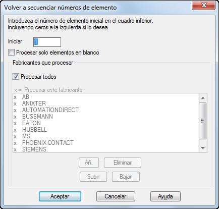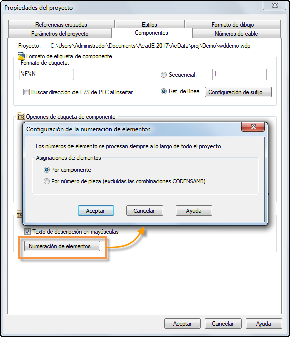 Existen un par de propiedades del proyecto que afectan a la numeración de elementos. Asegúrese de definir estas propiedades según sus preferencias antes de volver a secuenciar los números de elemento.
