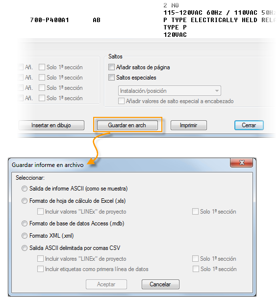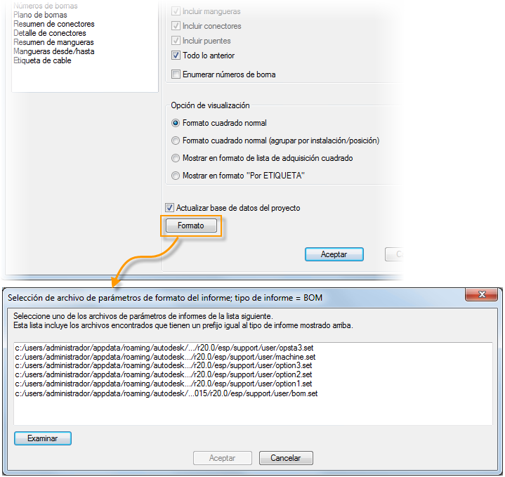Genere y defina el formato de los informes. Genere un informe en un archivo o insértelo como una tabla en el dibujo.