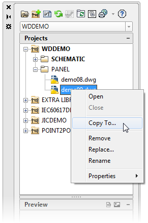 Utilice el Gestor de proyectos para copiar un único dibujo de cualquier proyecto abierto y añadirlo al proyecto activo.