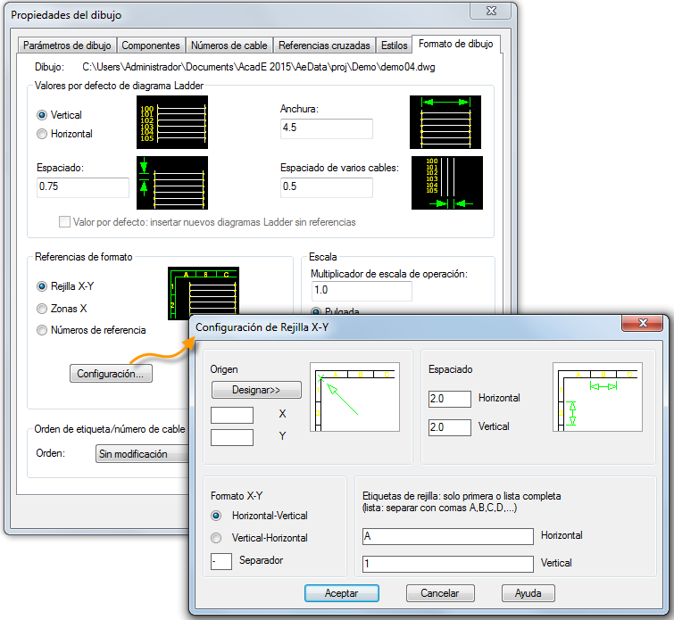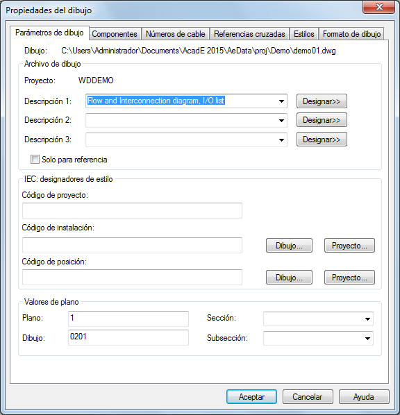 Las propiedades del dibujo controlan muchas de las funciones de AutoCAD Electrical. Incluyen: