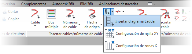 Después de definir el formato del sistema de referencia, el diagrama Ladder, la rejilla XY o la zona X se podrán insertar en un dibujo. Busque los comandos en la ficha Esquema