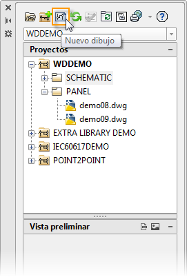 Utilice la herramienta Nuevo dibujo para crear un dibujo. Al crear un dibujo en el Gestor de proyectos, este se añade al proyecto activo. Se añade al final de la lista de dibujos. Arrástrelo y suéltelo para cambiar el orden.