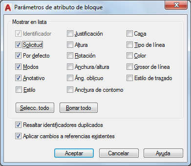 Se puede elegir Sinc en el Administrador de atributos de bloque para que los cambios se apliquen de manera inmediata a esos bloques existentes. Esta opción sustituye temporalmente a la opción Aplicar cambios a referencias existentes.