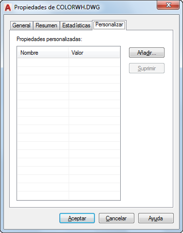 Muestra el cuadro de diálogo Añadir propiedad personalizada, que permite especificar el nombre y el valor de la nueva propiedad personalizada. El nombre debe ser único. El valor puede dejarse vacío.