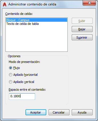 Los datos de celda de la tabla pueden incluir texto y varios bloques.