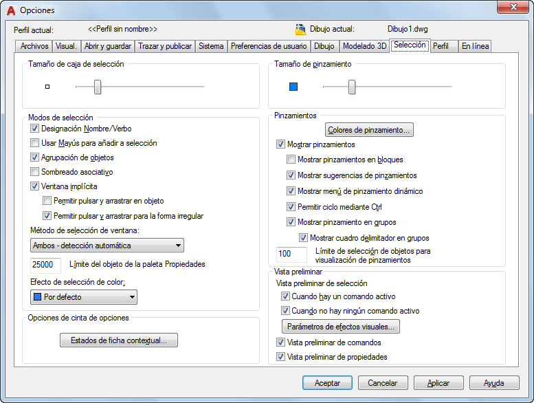 Muestra la vista preliminar de selección si no hay ningún comando activo. (Variable de sistema SELECTIONPREVIEW)