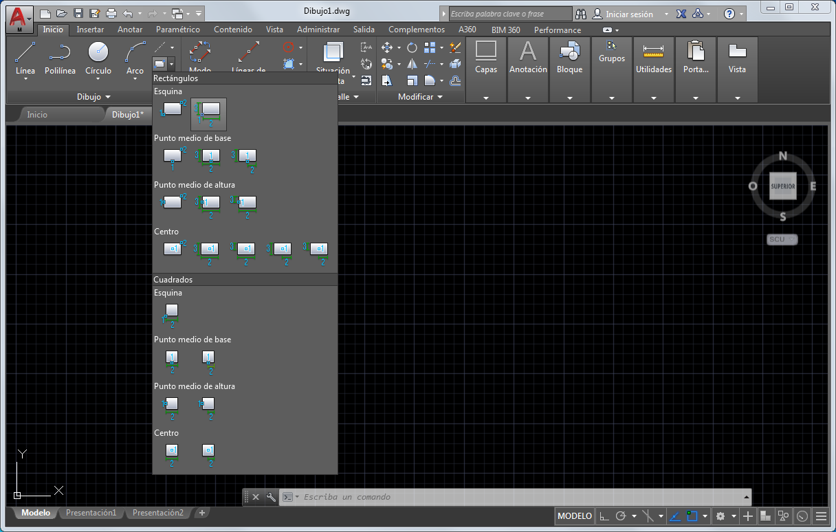 Los comandos de creación de rectángulo que se accedían mediante el cuadro de diálogo Rectángulos están ahora disponibles directamente desde la cinta de opciones.