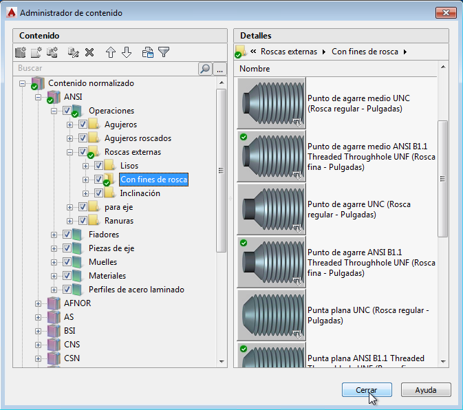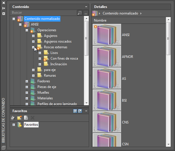 En algunos casos, debido a una actualización de biblioteca de contenido, el aspecto de una pieza u operación estándar que ya existe en una biblioteca de contenido puede cambiar. Normalmente, esto ocurre si la actualización de contenido resuelve un defecto. Si ya ha insertado la operación o la pieza estándar defectuosa en un archivo de dibujo, puede actualizarla haciendo doble clic en esta en el área de dibujo.