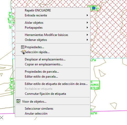 Figura 12: menú contextual de la etiqueta de selección de área de parcela