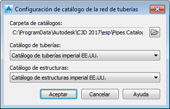 Figura 2: cuadro de diálogo para especificar los catálogos de redes de tuberías