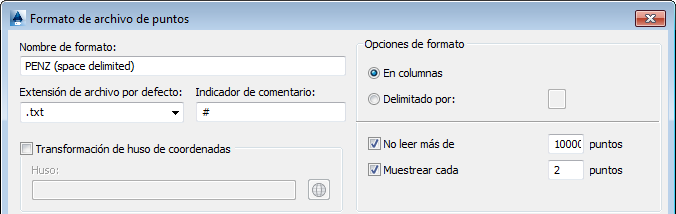Figura 1: parámetros para el filtrado del archivo de puntos
