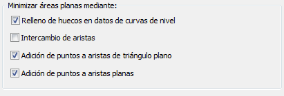 Cuando se añaden curvas de nivel a una definición de superficie, el cuadro de diálogo Añadir datos de curvas de nivel incluye parámetros por defecto para reducir las áreas planas, tal como se muestra en la figura 6.