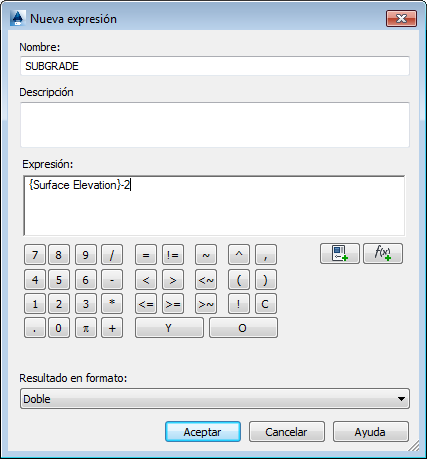 Los estilos de etiqueta permiten crear y asignar nombre a expresiones matemáticas basadas en los componentes de los objetos que etiquetan. Por ejemplo, se puede crear una expresión para las elevaciones de punto en una superficie que reste un valor determinado de la elevación de superficie real. Esta expresión se podría denominar CAPABASE y su composición podría ser: {Elevación de superficie}-2, donde Elevación de superficie es un componente, o una propiedad guardada, de la superficie.
