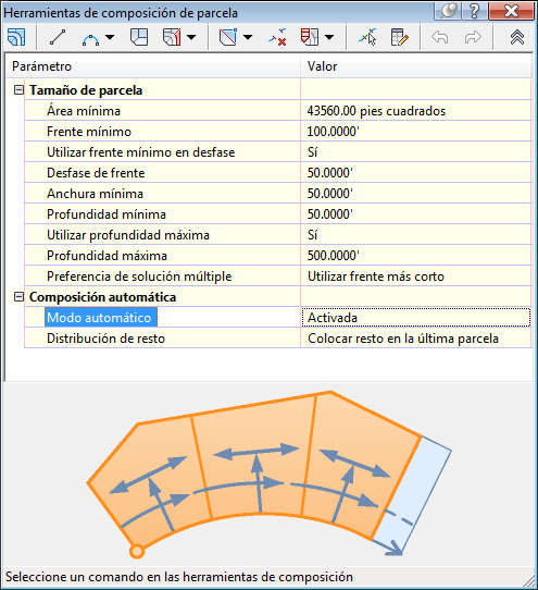 Se puede ajustar el tamaño de la parcela mediante la especificación de un frente mínimo o de un área mínima.