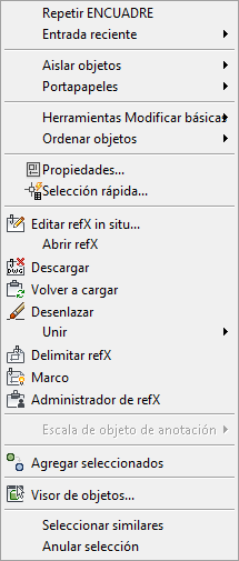 Figura 16: menú contextual de objeto de refX