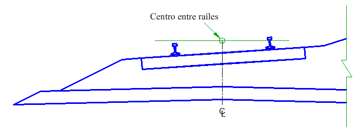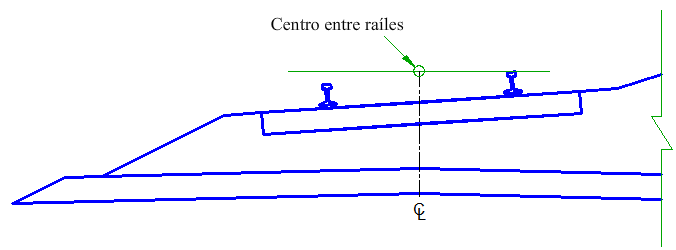 Talud superior de los lados derecho e izquierdo del subbalasto con el eje del subensamblaje como punto de articulación. |