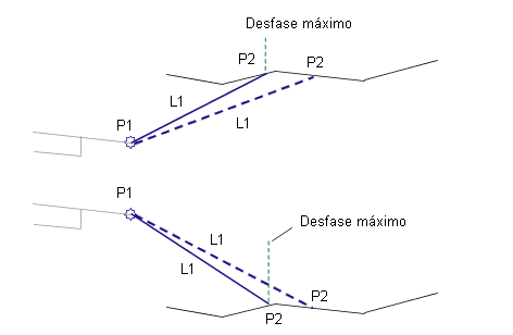 En caso necesario, el talud se ajusta para mantener el vértice dentro de un +/- desfase máximo desde la línea base.