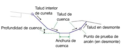 | Talud interior de cuneta | Talud del vínculo de talud interior de cuneta de la cuenca | Numérico, positivo | 3 (:1) |