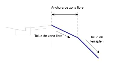 La berma es opcional en condiciones de terraplén. Si no se incluye ninguna berma, se añadirá un talud de zona libre y después, un talud en terraplén de intersección.