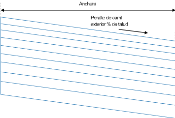 | Talud de peralte | Especifica el talud de peralte que se va a aplicar al carril. | Lista de selección | PorDefecto |