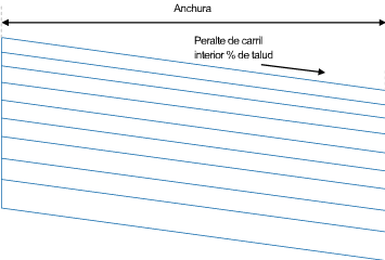 | Talud de peralte | Especifica el talud de peralte que se va a aplicar al carril. | Lista de selección | PorDefecto |