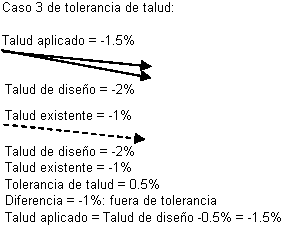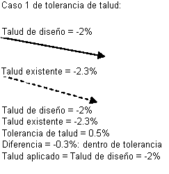 Valor de la variación permitida para los taludes de superposición con respecto a sus valores de diseño. La tolerancia de talud no se utiliza si el talud de superposición se especifica como M (consulte la sección Comportamiento para obtener información detallada). |