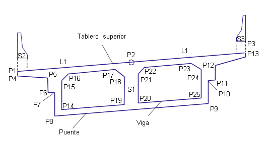 El subensamblaje construye los vínculos para la losa y la subestructura del puente de acuerdo con los parámetros de entrada precisados. Si se utilizan las opciones LI o LO para la losa del puente, el talud de peralte se mantendrá constante en toda la anchura del puente.