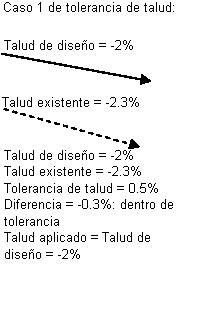 Variación permitida para el talud de superposición con respecto a su valor de diseño. La tolerancia de talud no se utiliza si el talud de superposición se especifica como M (consulte la sección Comportamiento para obtener información detallada). |