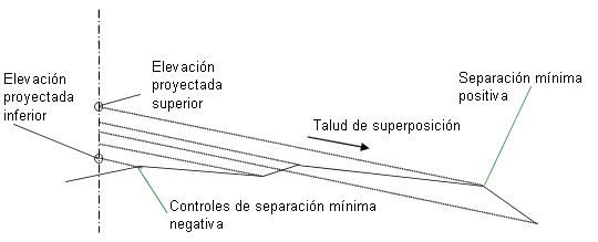 Selecciona si la parte superior de la superposición en el punto de recorte interior se debe mantener en la elevación del perfil de la obra lineal o si la ubicación vertical de la capa de superposición se debe definir en función del valor de la separación mínima |