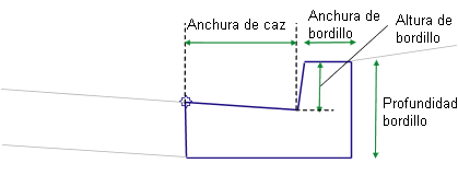 En el modo de diseño, este subensamblaje dibuja la forma de bordillo y caz según se especifica mediante los valores de los parámetros de entrada.