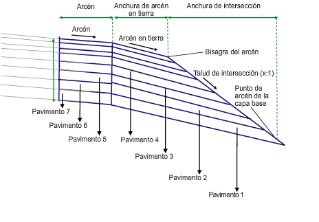 | Anchura de intersección | Especifica la anchura de la intersección del arcén | Numérico, positivo |