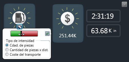 Aparecen indicadores numerados de color rojo junto a las estaciones. Los indicadores determinan la intensidad de la estación, una medida del flujo de materiales en la estación. Los indicadores numerados se pueden utilizar como guía a las regiones donde los cambios pueden tener mayor impacto.