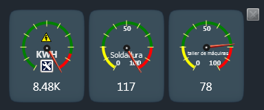 El color del indicador se basa en la especificación de Grado de utilización. Amarillo = uso escaso, verde = uso correcto y rojo = uso excesivo.
