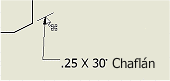 Utilice el comando Chaflán para añadir notas de chaflán a una vista de dibujo. |