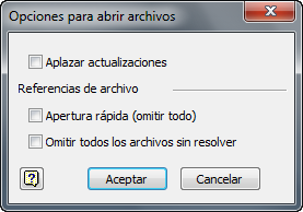 La nueva opción Apertura rápida del cuadro de diálogo Opciones para abrir archivos de dibujo permite abrir un dibujo con rapidez. Si selecciona Apertura rápida, no se intentará buscar ni resolver ningún archivo al que se haga referencia en el dibujo. Una vez abierto, el dibujo se comportará como si se hubiera abierto sin referencias de archivo presentes. Puede realizar y guardar modificaciones.