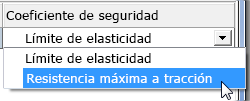 Un cambio del coeficiente de seguridad para materiales provoca un mensaje de advertencia. Al asignar materiales en Análisis de tensión, si se cambia el coeficiente de seguridad de Límite de elasticidad a Resistencia máxima a tracción (UTS), se muestra un mensaje de advertencia. En la advertencia se indica que el cálculo del coeficiente de seguridad de uno o más materiales se basa en UTS. UTS utiliza tensión principal y es adecuada para los materiales frágiles.