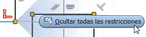 Las configuraciones de visualización seleccionadas Mostrar todo u Ocultar todas las restricciones permanecen activas en el boceto y durante la sesión de edición. Anteriormente, las configuraciones de visualización y ocultación no permanecían activas tras crear una nueva geometría o tras iniciar un nuevo boceto.
