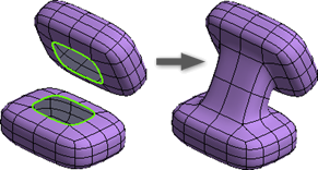 Utilice Vértices de soldadura para unir los vértices o para cerrar un agujero en un cuerpo de forma libre. Seleccione los puntos individualmente para desplazar el primer vértice hasta el segundo.