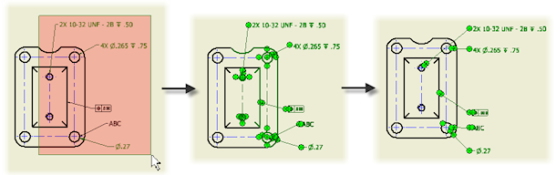 Cualquier selección en ventana que incluya anotaciones compatibles con los comandos Alinear es válida y los comandos Alinear se muestran en el menú contextual. Después de iniciar un comando de alineación, todos los objetos que no estén alineados se eliminarán automáticamente del conjunto de selección.
