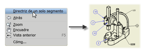Seleccione la opción Directriz de un solo segmento para cambiar el procedimiento por defecto y crear anotaciones de dibujo con un solo segmento de directriz. La opción Directriz de un solo segmento está disponible para referencias numéricas, texto de directriz, símbolos de acabado superficial, símbolos de soldadura, rectángulos de tolerancia, referencias parciales y símbolos de boceto. Esta opción se define por separado para cada tipo de anotación de dibujo.