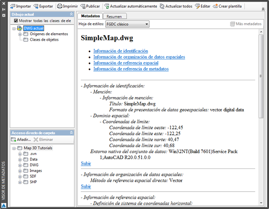 Visualice, cree y edite metadatos (quién, qué, cuándo, dónde, por qué y cómo) sobre la información espacial.
