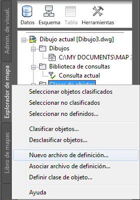 Utilice la ficha Explorador de mapa del Panel de tareas para crear el archivo de definición de clase de objeto . Puede crear este archivo en cualquier mapa.