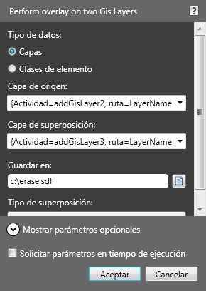Por ejemplo, el flujo de trabajo Superposición requiere que especifique el banco de datos al que conectarse.