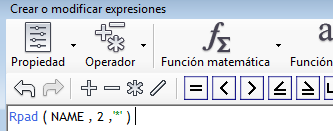 Por ejemplo, si va a rellenar la parte derecha de una cadena de texto con tres asteriscos, la expresión sería: