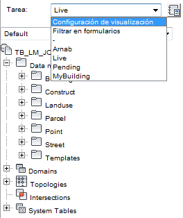 En el control de tareas, seleccione una tarea entre las tareas disponibles. Puede utilizar un filtro para reducir el número de tareas que se muestran en la lista.