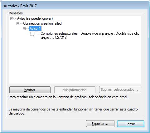 Los marcadores de advertencia se pueden mostrar o ocultar seleccionando o anulando la selección de la casilla Mostrar advertencias en vistas en el cuadro de diálogo Configuración de conexión estructural, ficha Parámetros: