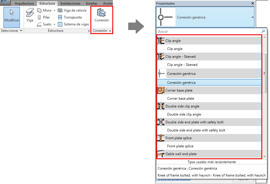 Ejecute el instalador Autodesk Steel Connections for Revit para instalar el complemento. Una vez que se ha completado la instalación, es posible que sea necesario reiniciar el producto de Autodesk para activar el complemento. Cuando el complemento está instalado, tiene acceso al uso de las 22 conexiones disponibles: