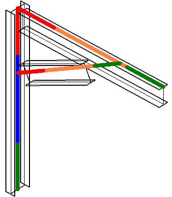 Puede especificar diferentes colores, grosores de línea o patrones para los segmentos de inicio y fin de los pilares, las vigas o las tornapuntas de un modelo analítico.