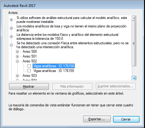 Advertencia de ejemplo: el elemento analítico sin parámetros de estructura