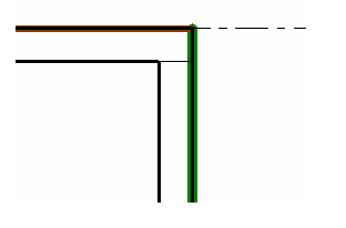 Si el borde analítico del suelo coincide con el modelo analítico del muro o de la viga, el exterior del muro se puede definir como el plano de proyección analítica. También es posible recortar el borde hasta el modelo físico/analítico del suelo, como muestra esta ilustración: